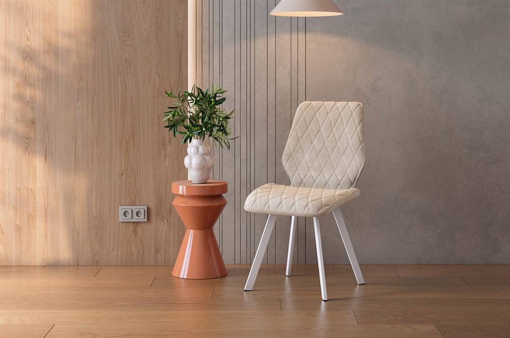 МатериалМатериал обивки: велюр Каркас стула: гнутоклеённая фанера 10 мм., ППУ плотностью 25 кг/м³ – 40 мм Материал опор: металл, пластиковые наконечники