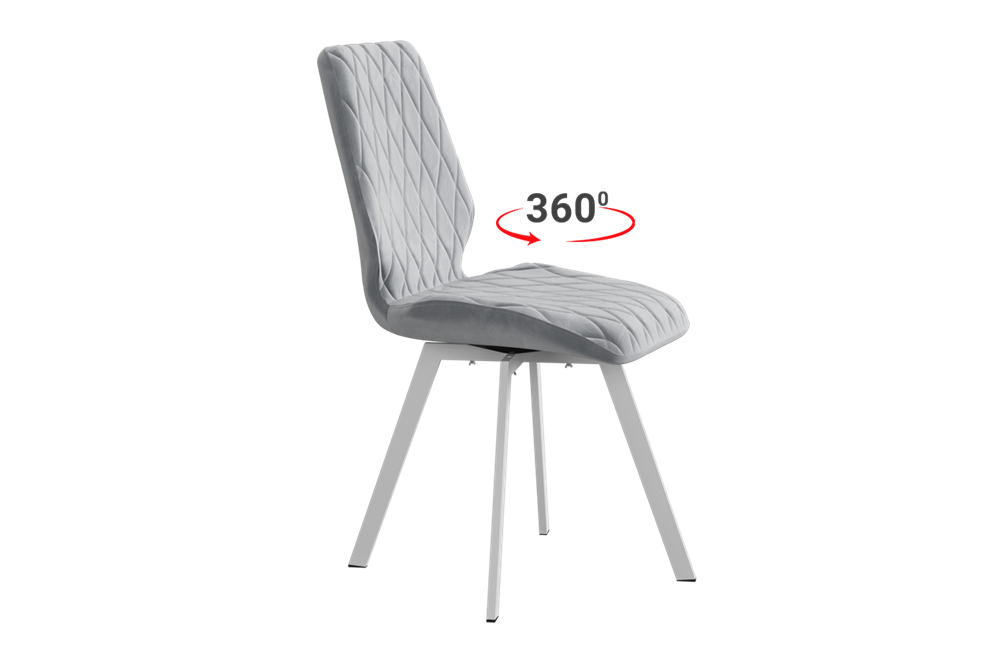 МатериалМатериал обивки: велюр Каркас стула: гнутоклеённая фанера 10 мм., ППУ плотностью 25 кг/м³ – 40 мм Материал опор: металл, пластиковые наконечники Площадка поворотная: металл