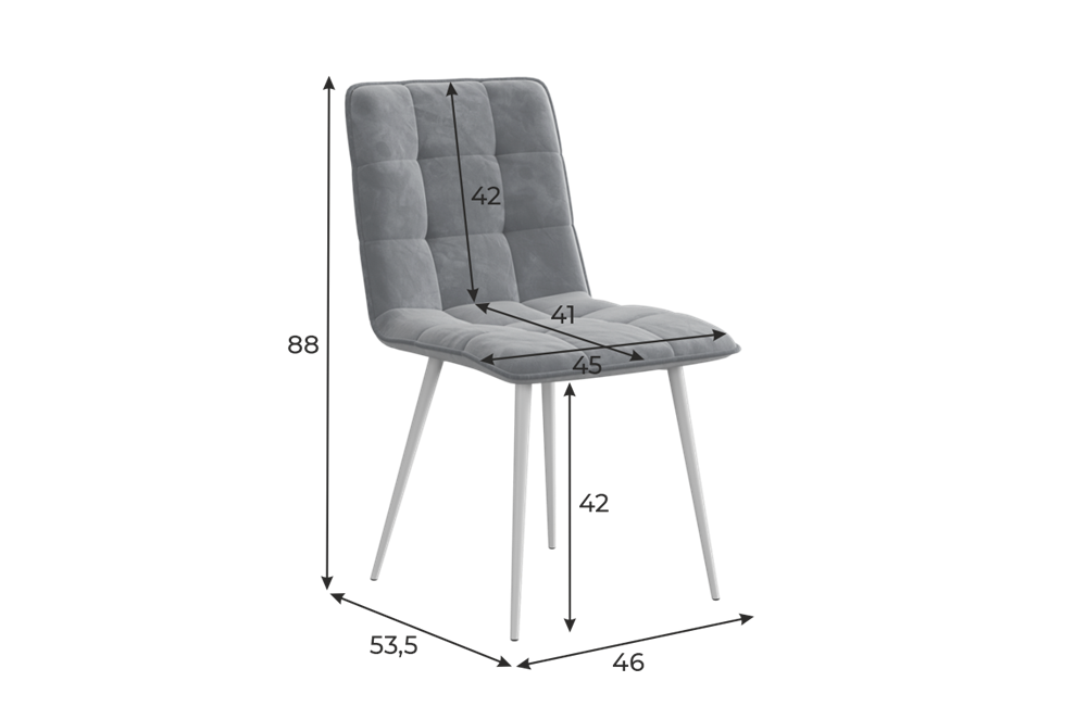 МатериалМатериал обивки: велюр Каркас стула: гнутоклеённая фанера 10 мм., ППУ плотностью 25 кг/м³ – 40 мм Материал опор: металл, пластиковые наконечники