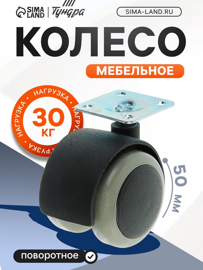 Плавное движение для домашнего пространства! Поворотное мебельное колесо 50 мм — это универсальная опора для создания мобильной мебели. Серый цвет и плавный ход делают его практичным решением для современного интерьера.