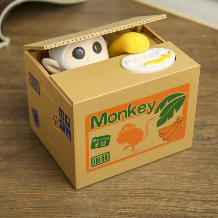 Копилка пластик "Мартышка, прятающая монетки" от 2АА звук 9,3х12х10 см 3782441
