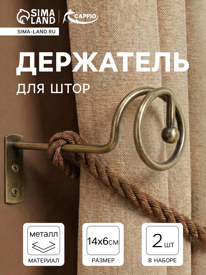 Крючок - держатель для штор на стену CAPPIO KS044, металлический, цвет бронза, 2 шт 10905659 CAPPIO