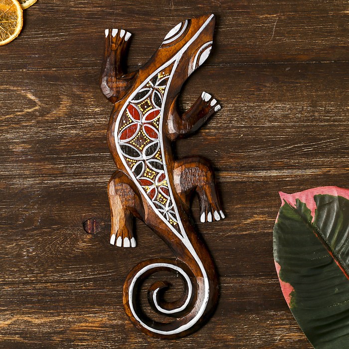 Не каждый осмелится разместить такое панно ручной работы в своем интерьере. Ведь порой кажется, что это настоящая живая рептилия. Искусные индонезийские мастера изобразили всё настолько детализировано четко, что хочется прикоснуться к панно дерево "Геккон" 31х11х1 см и ощутить тонкие линии изгибов этой «ящерицы счастья».