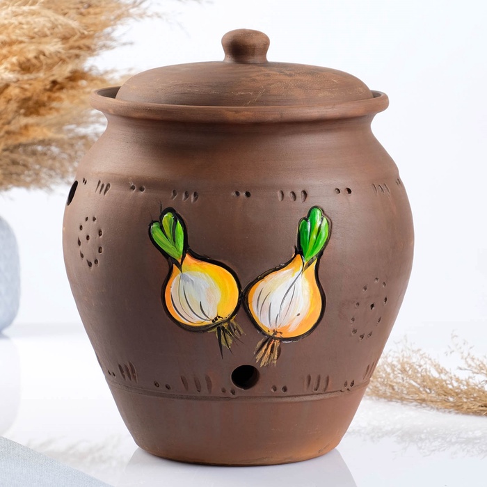 Ценители традиционной керамики оценят аутентичную технику молочения и ручную роспись. Практичные хозяйки найдут удобным хранение лука в доступном месте без распространения запаха. Садоводы и дачники используют ёмкость для сохранения урожая с грядки.