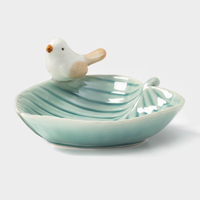 УЦЕНКА Блюдо керамическое «Птичка на листочке», 15,5×15,5 см, цвет голубой 10850054