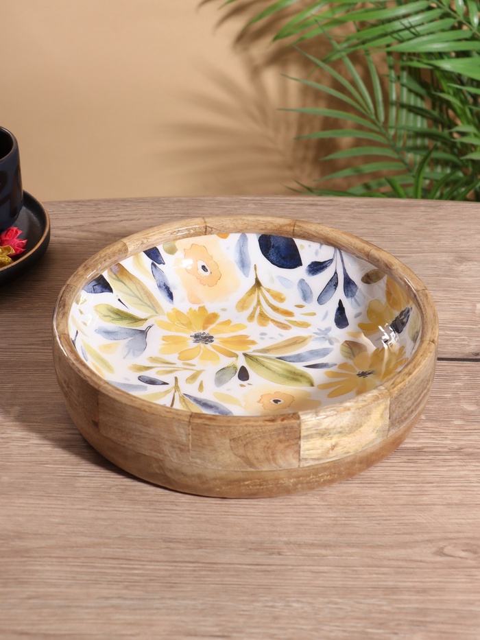 УЦЕНКА Блюдо "Желтые и синие цветы" дерево манго 25,5х25,5х6 см 10926762