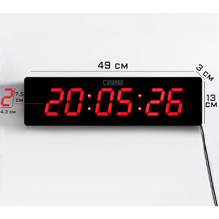 УЦЕНКА Часы электронные настенные "Соломон", 49 x 13 x 3 см, цифра 7.5 х 4.3 см, красная индикация 9 10933097 Соломон