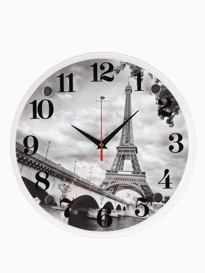 УЦЕНКА Часы настенные, интерьерные "Эйфелева Башня", d-30 см, бесшумные 10936451 Рубин