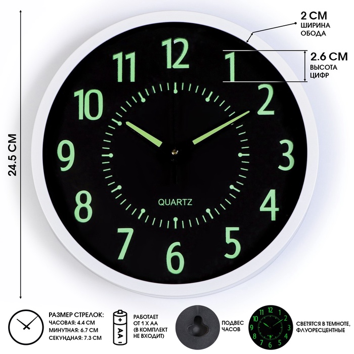 Настенные флуоресцентные часы - идеальное решение для создания стильного и уютного интерьера. Эти часы - настоящая находка для тех, кто ценит качество и неповторимый дизайн. Настенные часы - это не только функциональный предмет, но и настоящий декоративный аксессуар. Они прекрасно впишутся в любой интерьер, будь то кухня, гостиная, спальня или детская комната. Благодаря своему дизайну, они подчеркнут стиль и гармонию вашего дома.