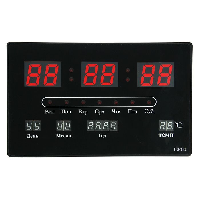 Часы настенные электронные Big: календарь, время, красные цифры, УЦЕНКА (царапины) 1582420