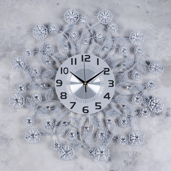 УЦЕНКА Часы настенные, серия: Ажур, "Листья и цветочки", плавный ход, d-59 см, циферблат 22 см 15506 10923423