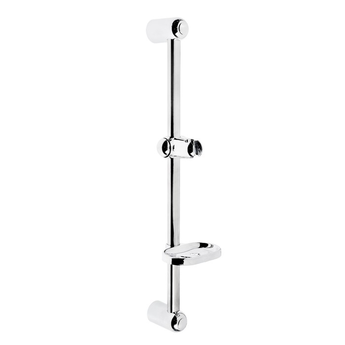 Это вертикальная штанга, на которой установлен кронштейн для ручного душа. Штанга стационарно крепится к стене над ванной при помощи специальных кронштейнов. Модель оснащена удобной пластиковой мыльницей.