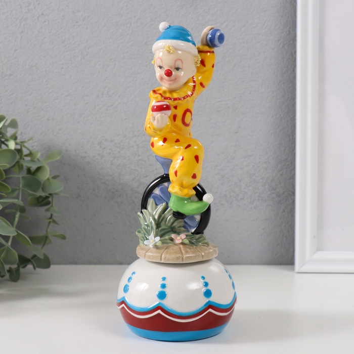 УЦЕНКА Сувенир керамика музыкальный "Клоун жонглирует сидя на колесе" 8,5х8,5х22 см 10918758