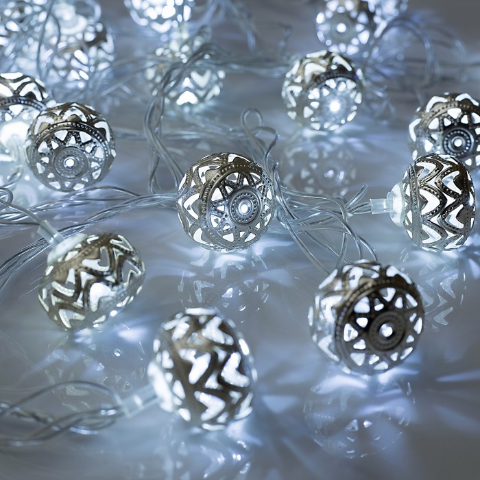 УЦЕНКА НИТЬ 5 м, с насад.“Шарик орнамент 2.5 см”, Н.С. LED-20-220V, контр. 8 режимов, БЕЛЫЙ 2906286 Luazon Lighting