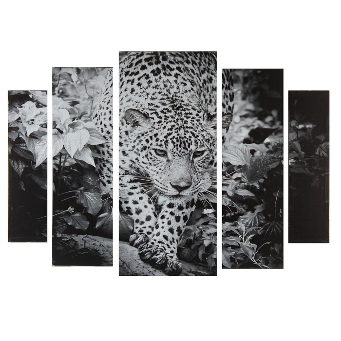 УЦЕНКА Картина модульная на подрамнике "Черно-белый леопард" 2-14х53, 2-21х69,5 1-34х79; 80х118 см 2 10927986