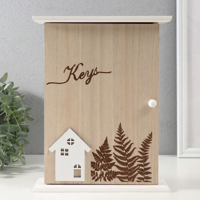 УЦЕНКА Ключница дерево 5 крючков «Дом и папоротник» 6×20×25.8 см 10951878