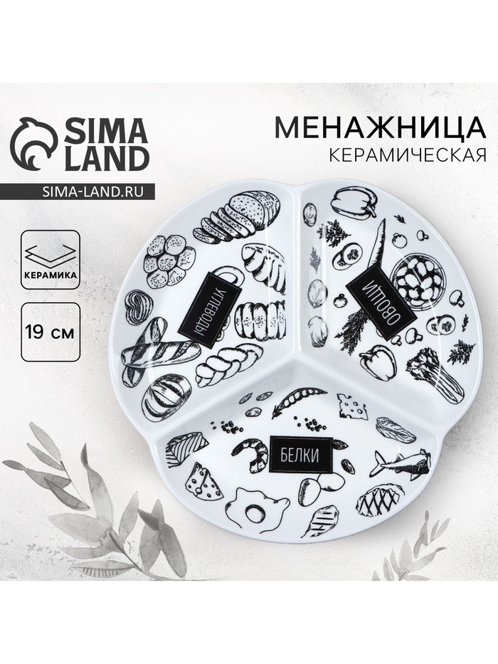 УЦЕНКА Менажница «ПП», 19 см, 3 ячейки, керамическая