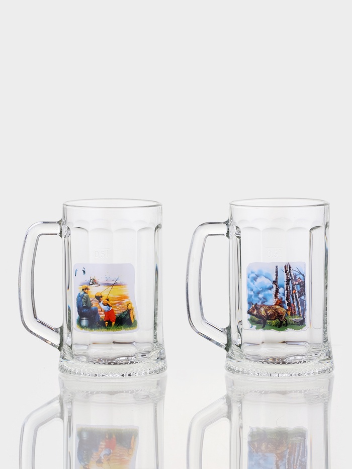 УЦЕНКА Набор 2-х бокалов д/пива 500 мл. 'Охота-рыбалка' в подарочной упаковке 10928849 GiDGLASS