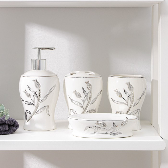 УЦЕНКА Набор аксессуаров для ванной комнаты «Тюльпан», 4 предмета (дозатор 450 мл, мыльница, 2 стакана), цвет белый 9471004
