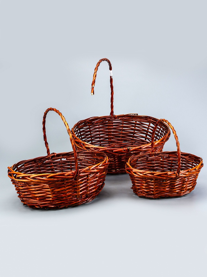 УЦЕНКА Набор плетёных корзин, 38×30×14 см, 33×25×12 см, 28×20×11 см, ручка h=21. 18, 14 см 10940923 Дарим Красиво
