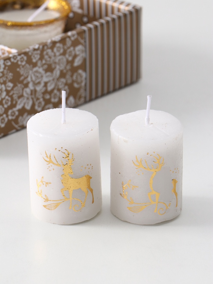 УЦЕНКА Набор свечей «Столбики. Золотые олени и подсвечник», 3 шт., 11.5×17×5 см 10871987
