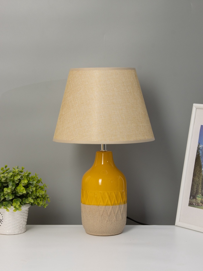 - Эстетичный дизайн: Лампа с бежевым и желтым основанием и темным абажуром гармонично вписывается в любой интерьер, придавая ему индивидуальность.