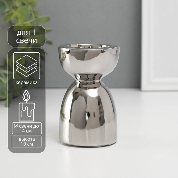 УЦЕНКА Подсвечник керамика на 1 свечу «Иллюзорность» d=4 см серебро 6.5×6.5×10 см 10947504