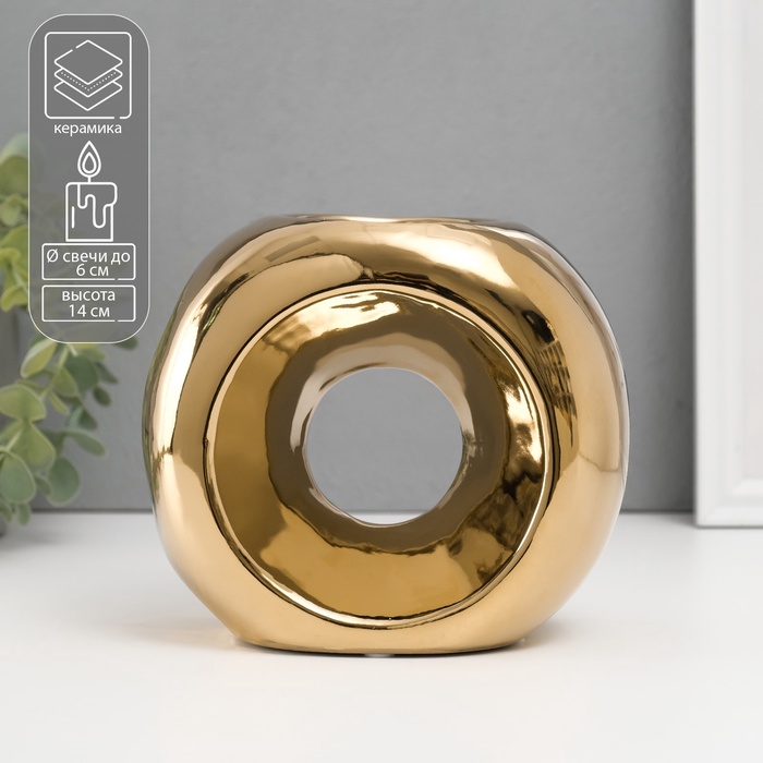 УЦЕНКА Подсвечник керамика на 1 свечу "Кольцо" d=6 см золото 16х8х14 см 10964089