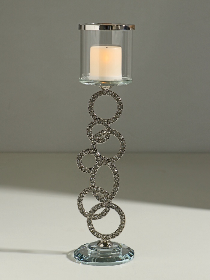 УЦЕНКА Подсвечник стекло на 1 свечу «Сплетение колец» стразы серебро 27×7×7 см 10946385