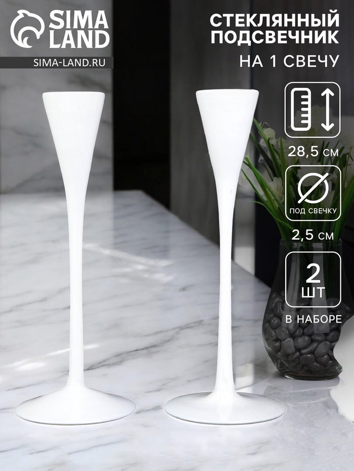 УЦЕНКА Подсвечник стекло "Узкий бокал" белый набор 2 шт 28,5х10,5х10,5 см 10934347
