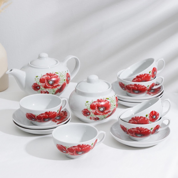 УЦЕНКА Сервиз чайный 14 предметов Дачный Маки, блюдца без мака 10959554 Дулевский фарфор