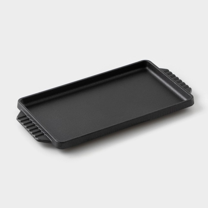 УЦЕНКА Сковорода чугунная «Прямоугольник», 23,5×12×1,7 см, с ручками, на деревянной подставке 10783909