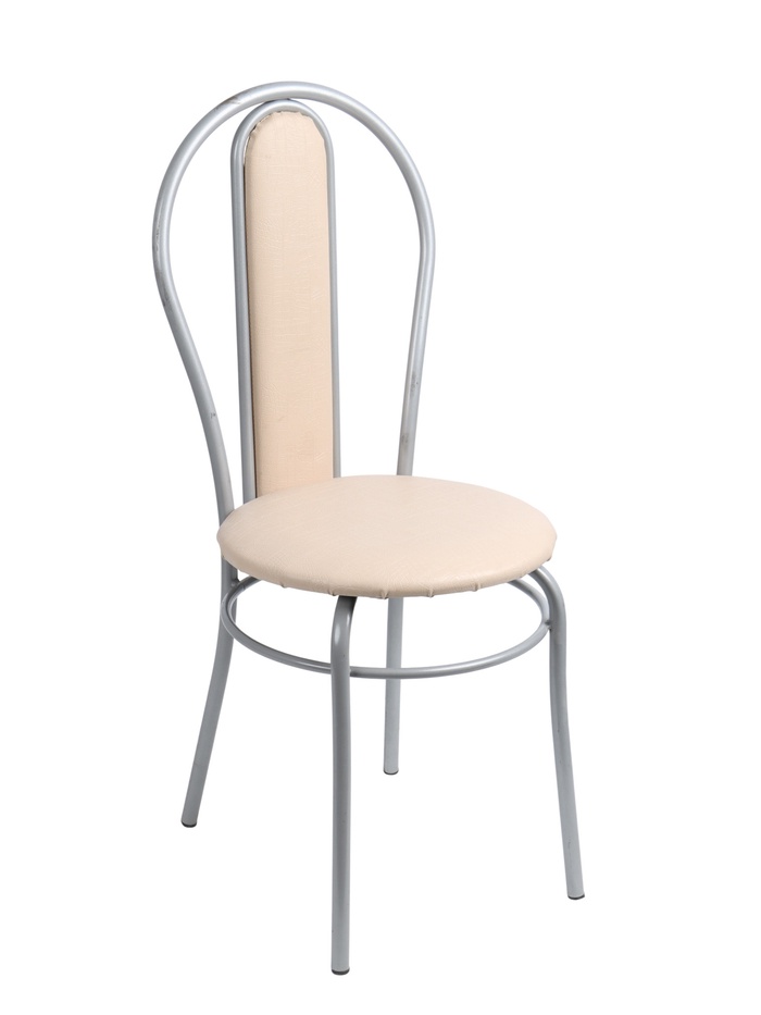 Гармония стиля и удобства. Серебристо-металлический корпус и обивка цвета молочной рептилии делают этот стул идеальным дополнением к любому кухонному интерьеру.
