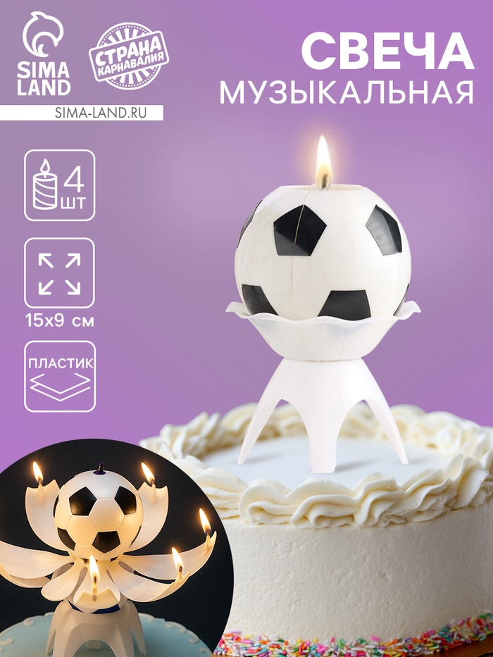 УЦЕНКА Свеча для торта музыкальная «Мяч», бело- чёрная 10932359 Страна Карнавалия
