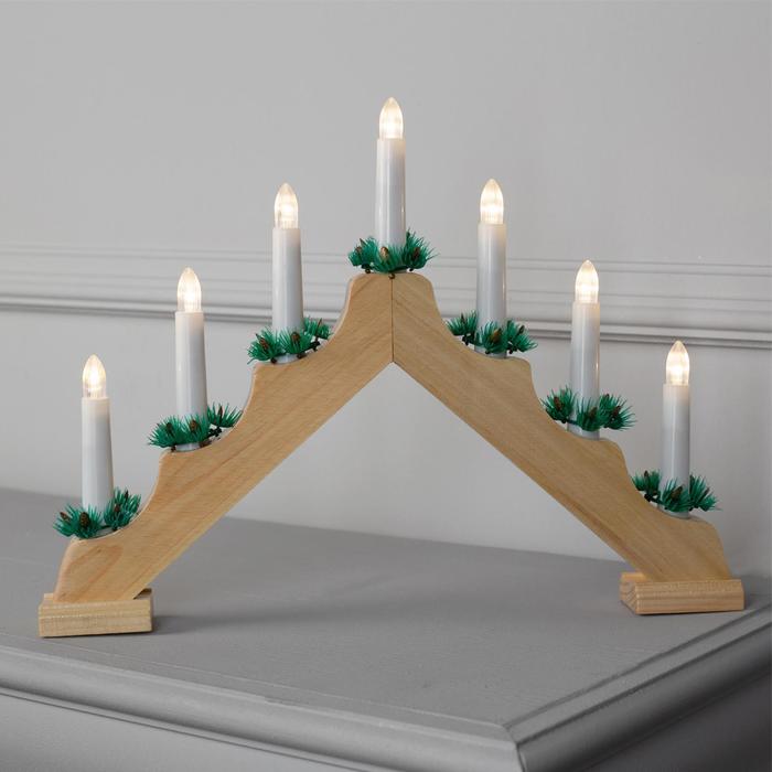 УЦЕНКА Фигура дерев. "Горка рождественская" 7 свечей LED, 220V, Т/БЕЛЫЙ 6490484 Luazon Lighting