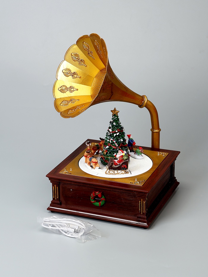 УЦЕНКА Светодиодная фигура «Рождественский граммофон» 24.5 × 35.5 × 22.5 см, полистоун, батарейки ААх3 (не в комплекте), USB, свечение мульти 10235547 Luazon Lighting